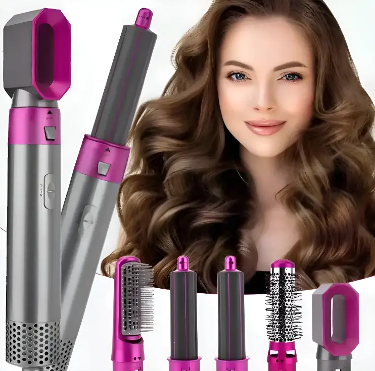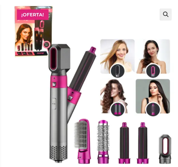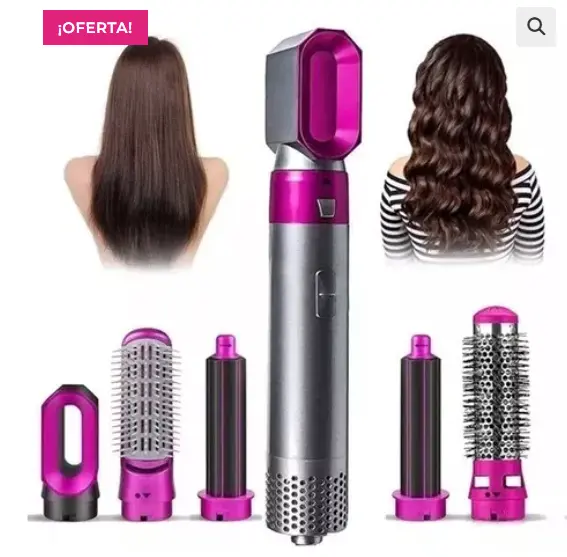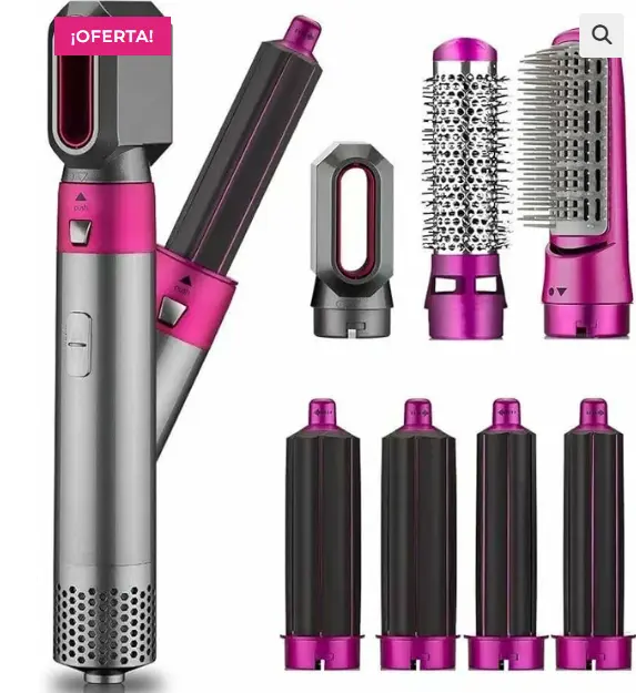 - 5 accesorios intercambiables: cepillo recto, cepillo brushing, buclera hacia la derecha y hacia la izquierda, pre moldeado. (Ninguno es giratorio)
